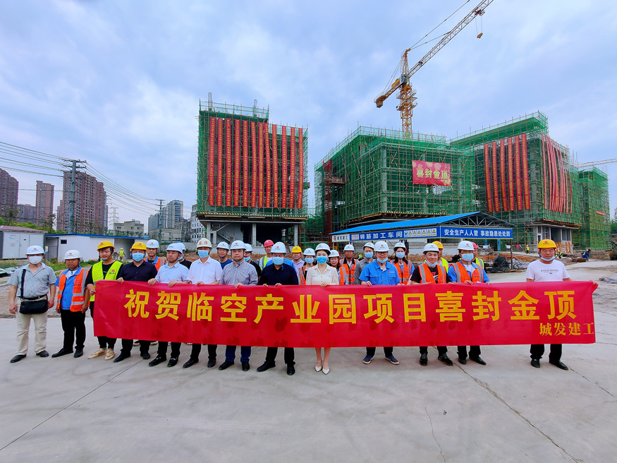 谷雨時節(jié),春意盎然。2022年4月22日上午11時18分,黃石臨空商務產(chǎn)業(yè)園獨棟企業(yè)總部項目部分樓棟封頂儀式在項目現(xiàn)場隆重舉行。城發(fā)建工集團總支委員、副總經(jīng)理洪登峰,城發(fā)建設公司副總經(jīng)理崔巍,城發(fā)置業(yè)公司副總經(jīng)理潘娟等參建各方代表出席封頂儀式,項目管理人員、工友代表等30余人參加活動。