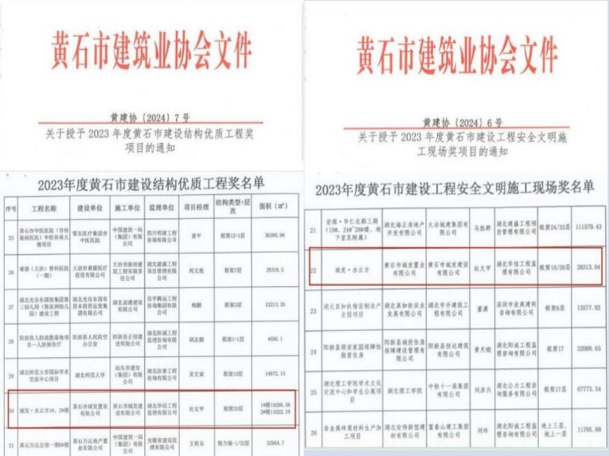 近日,由黃石市城發(fā)建設(shè)有限公司承建的城發(fā)·水云方項目榮獲黃石市2023年度建設(shè)工程安全文明施工現(xiàn)場和結(jié)構(gòu)優(yōu)質(zhì)工程獎。